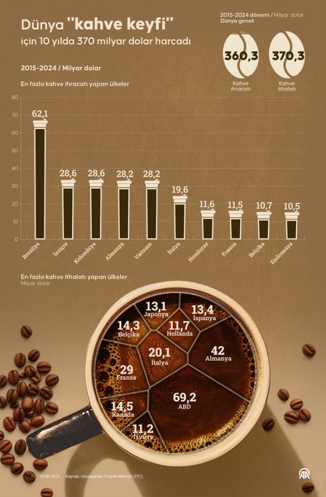 Türkiye 2015-2024 döneminde kahve ithalatına 2 milyar 698 milyon 473 bin dolar harcadı.
