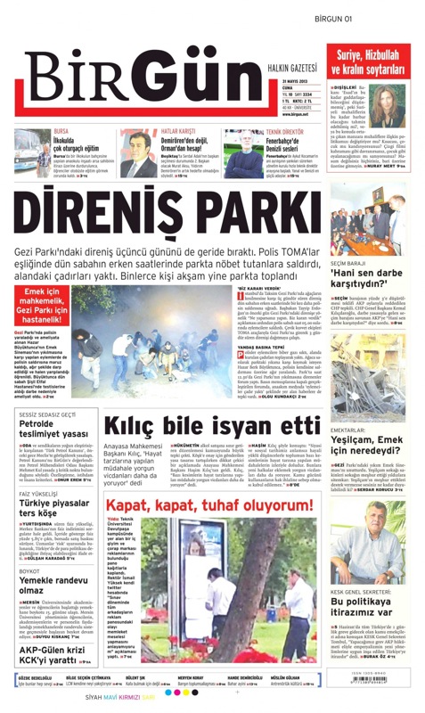 Ana Sayfa 31 Mayıs 2013'te gazeteler hangi manşetle çıkmıştı? birgun_2013-05-31