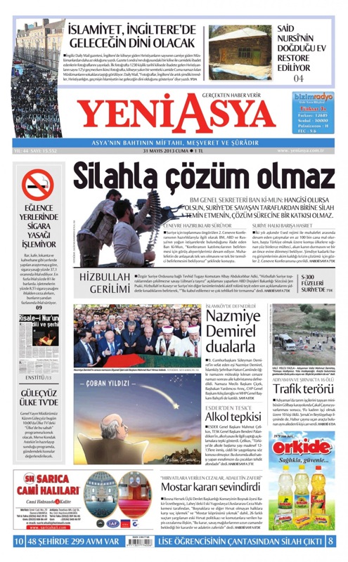 Ana Sayfa 31 Mayıs 2013'te gazeteler hangi manşetle çıkmıştı? yeniasya_2013-05-31