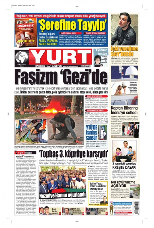31 Mayıs 2013'te gazeteler hangi manşetle çıkmıştı?