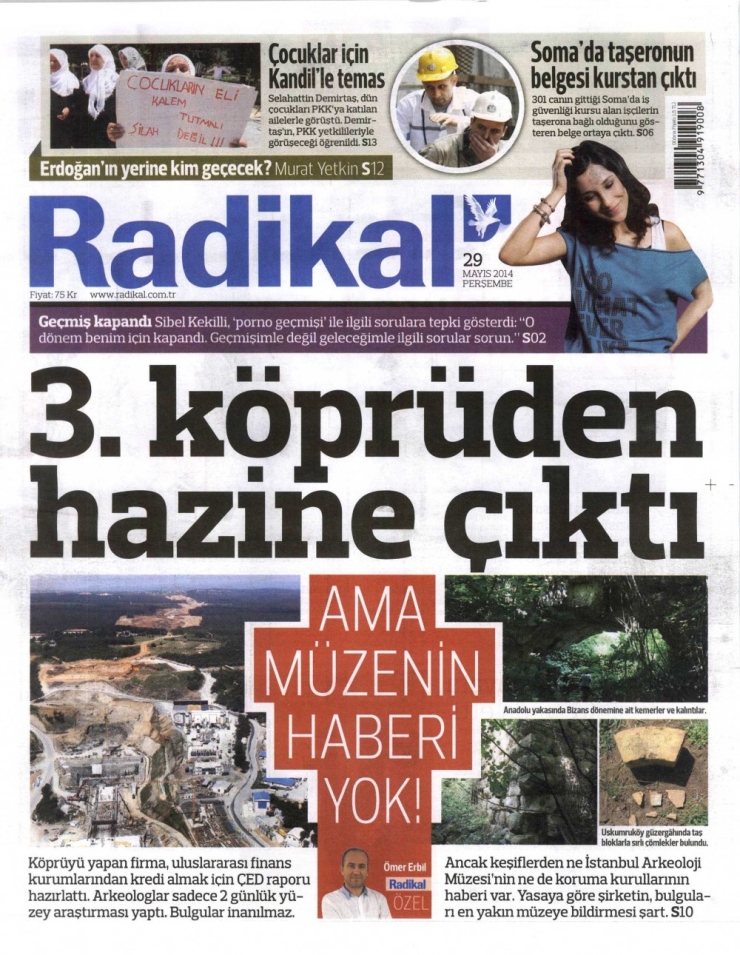 3’üncü köprünün güzergâhında Osmanlı’dan Roma dönemine uzanan çok sayıda tarihi eser bulunduğu ancak inşaatın Marmaray gibi uzamaması için İstanbul Arkeoloji Müzesi’ne kasıtlı olarak haber verilmediği ve bu şekilde yasaların çiğnendiği ortaya çıktı.