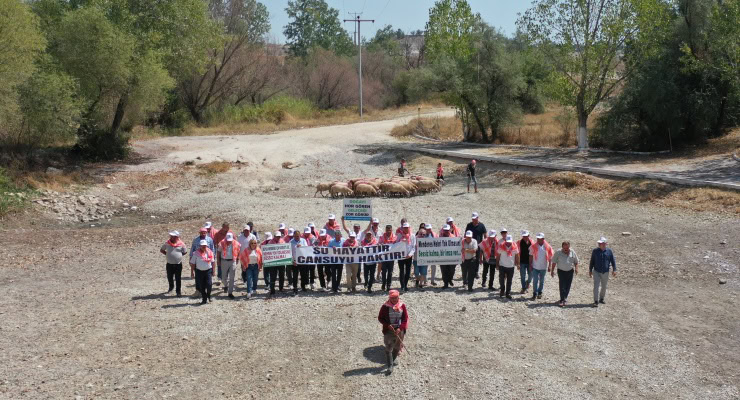 Her yıl koyunların yüzdürülerek geçirildiği nehirde suyun çekilmesi nedeniyle bu kez koyunlar yatağın içinden yürütüldü. Vatandaşlar da “Su hayattır, can suyu haktır” yazılı pankartlar taşıdı.