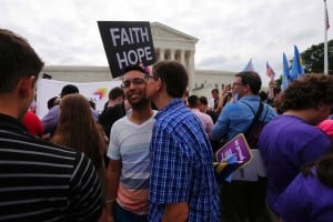 Gay rights supporters celebrate outside the U.S. Supreme Court building in Washington 26/06/2015 17:43