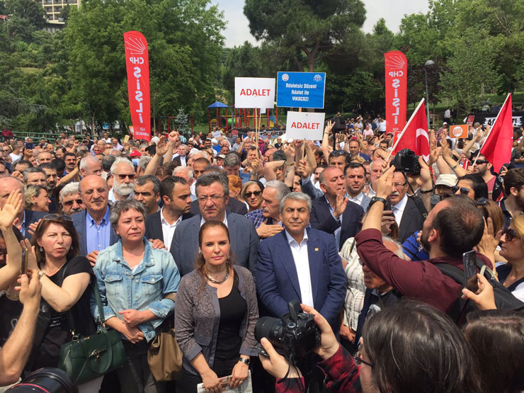 Aralarında CHP’li milletvekillerinin de grup, Maçka Parkı’nda toplandı. Parkın içine konuşmaların yapılması için platform kurulurken, eylemcilerin ellerinde Kılıçdaroğlu gibi sadece ‘Adalet’ yazılı pankartlar taşıyor.