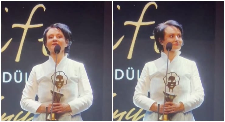 27’nci Afife Tiyatro Ödülleri töreninde ‘En iyi kadın oyuncu’ ödülünü alan Sükut Işıtan’ın konuşması sırasında Devlet Tiyatroları Genel Müdürü Tamer Karadağlı’ya teşekkürü salonda yuhalamalara neden oldu.