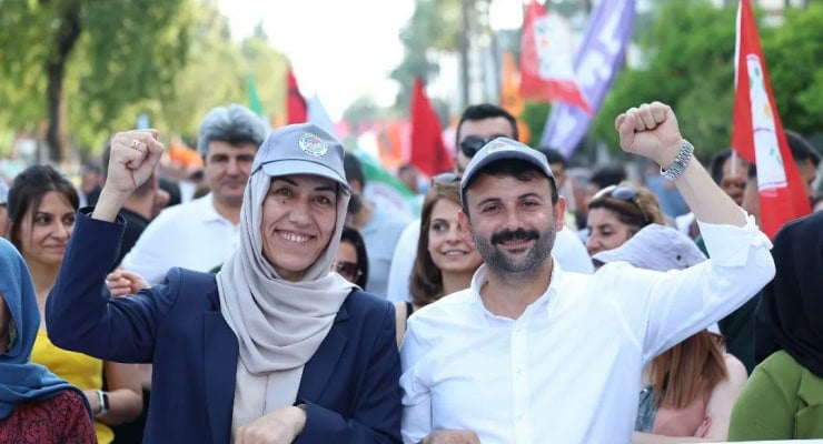 Mersin’de gözaltına alınan DEM Partili Akdeniz Belediyesi Eş Başkanları Hoşyar Sarıyıldız ve Nuriye Arslan ve üç belediye meclis üyesi ‘terör soruşturması’ gerekçesiyle tutuklandı.