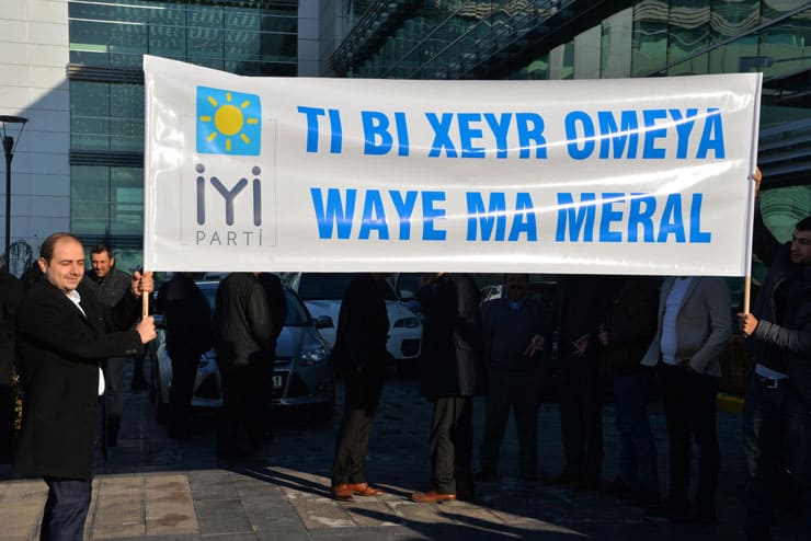 İYİ Parti Genel Başkanı Meral Akşener, Şırnak ve Cizre’ye gitmek için indiği Diyarbakır Havalimanı’nda Türkçe, Kürtçe ve Zazaca yazıların bulunduğu pankartlarla karşılandı.