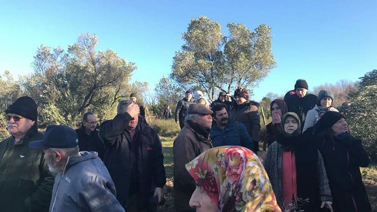 Zeytin ağaçlarının başka bir alana taşınmasına tepki gösteren köylüler, “Bu zeytinler bizim. Başka bir yere götüremezsiniz” diyerek eylem başlattı.