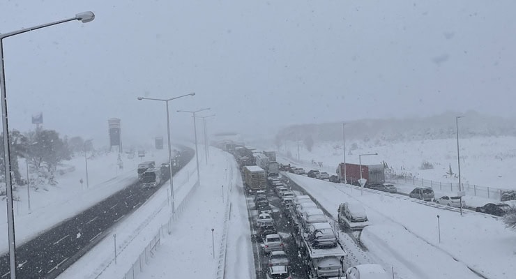 Otoyolun Ankara yönünde yoğun kar yağışı, kayan araçlar ve hasarlı trafik kazaları nedeniyle Abant Kavşağı’ndan itibaren ulaşım durdu.