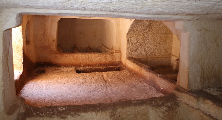 Antik kentte ‘sonsuzluk merdiveni’ olarak bilinen nekropol alanında çeşitli figürlerle dolu 2 bin 100 yıllık bir mezar bulundu.