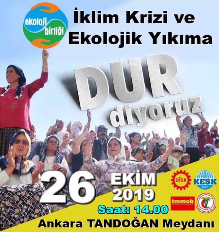 DİSK, KESK, TMMOB ve TTB, 26 Ekim’de Çankaya ilçesindeki Anadolu Meydanı’nda “Ekolojik yıkıma ‘Dur’ de” sloganıyla toplanmak istedi.