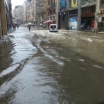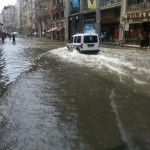 Galatasaray Lisesi’nin bulunduğu bölgede yurttaşların su birikintisinde yürümekte zorlandığı görüldü.