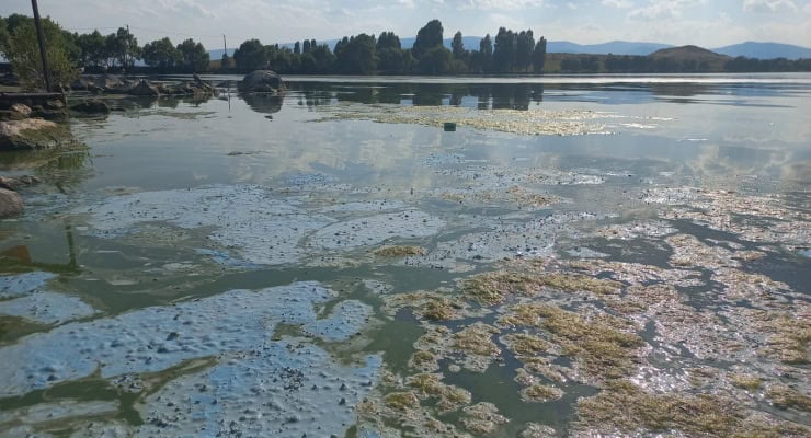 Ardahan’da hava sıcaklığının etkisiyle, Çıldır Gölü’nde yosun oluştu.