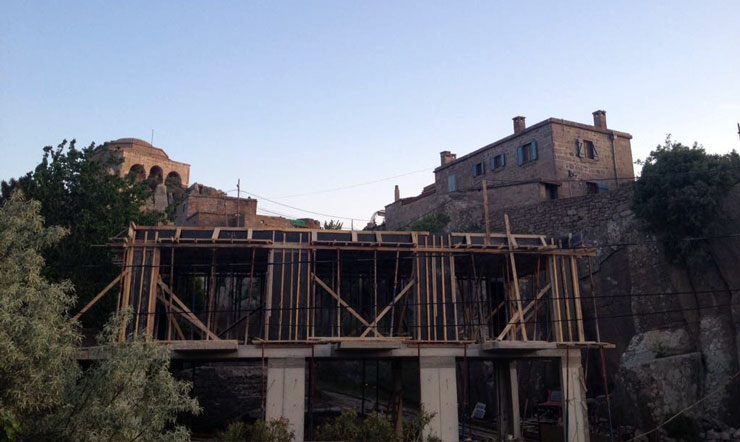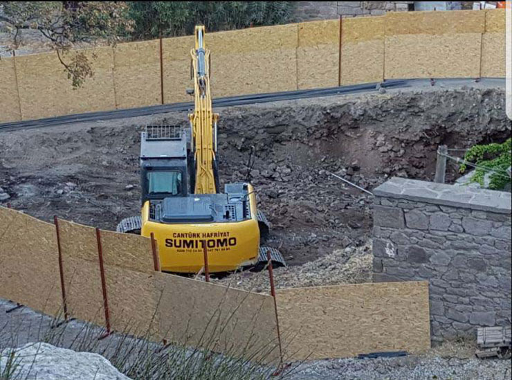 Assos’un tarihsel ve kentsel kimliğine aykırı bir şekilde betonarme olarak inşa edilen otel, şimdiden bodrum katıyla birlikte üç kat yükselmiş durumdaydı.
