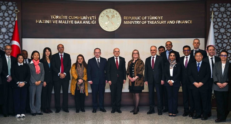 AKB yetkilileri heyeti, faaliyetlerini belirlemek için kamu ve özel sektör temsilcileriyle görüşmek üzere Türkiye’ye geldi. Heyet, bugün Hazine ve Maliye Bakanı Mehmet Şimşek’le de bir araya geldi.