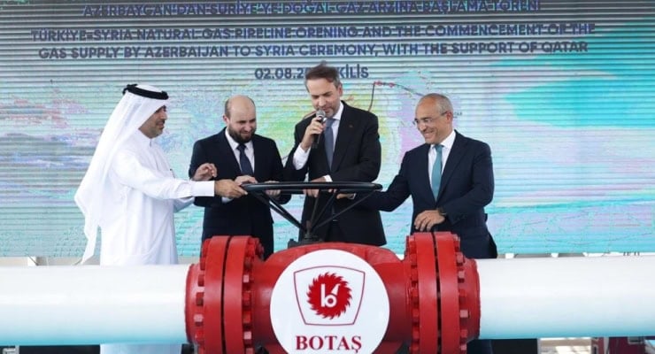 Azerbaycan doğalgazının Türkiye üzerinden Suriye’ye akışını sağlayacak ‘Türkiye-Suriye Bölgesel Doğalgaz İletim Hattı’ törenle açıldı.