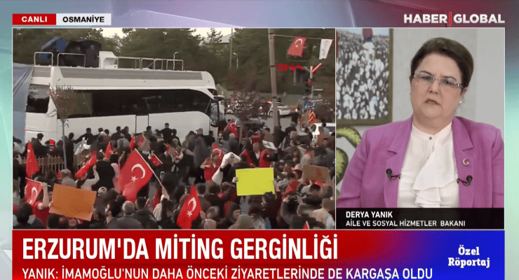Aile ve Sosyal Hizmetler Bakanı Derya Yanık, Erzurum’daki taşlı saldırıda İstanbul Büyükşehir Belediyesi Başkanı Ekrem İmamoğlu’nu suçladı.