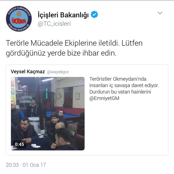 Sosyal medya bürokrasisi: İçişleri Bakanlığı, ihbar mesajını Twitter’dan emniyete iletti