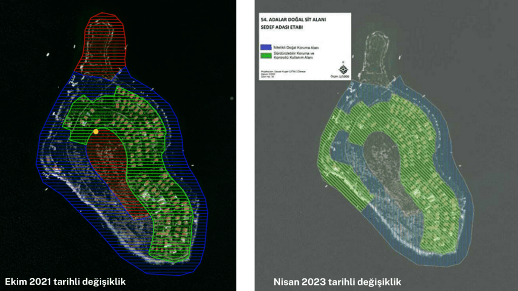 Çevre, Şehircilik ve İklim Değişikliği Bakanlığı, İstanbul’daki Prens Adaları’nın bir parçası Kaşık ve Sedef’in doğal SİT derecesini Ekim 2021’de değiştirmişti. SİT derecesi düşürülen adalarda yapılaşmanın önü açılmıştı. İki adaya da yat limanı, turizm tesisi, tekne imal ve çekek yeri kurulabilecek, madencilik dahi yapılabilecekti.