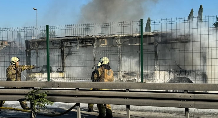 İstanbul’da İncirli durağında bir metrobüs yandı.