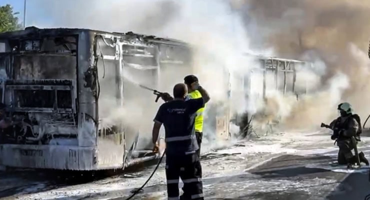 Bakırköy'de seyir halindeki metrobüs yandıhttps://t.co/6ck48Mrpuf pic.twitter.com/Xch7FiaHK2
