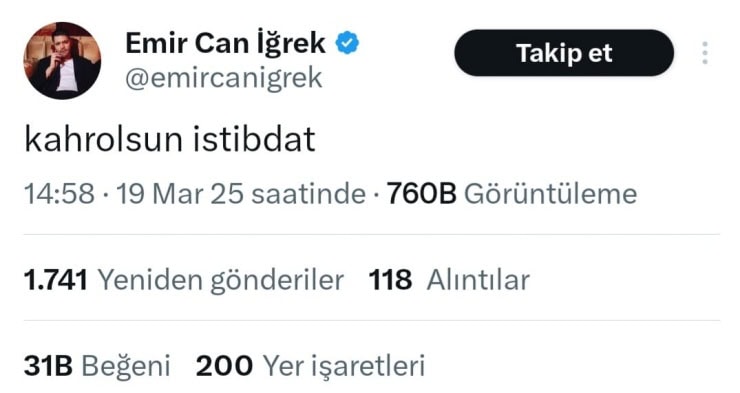 Bazı ünlüler, İstanbul Büyükşehir Belediye (İBB) Başkanı Ekrem İmamoğlu’nun gözaltına alınmasını eleştirdi.