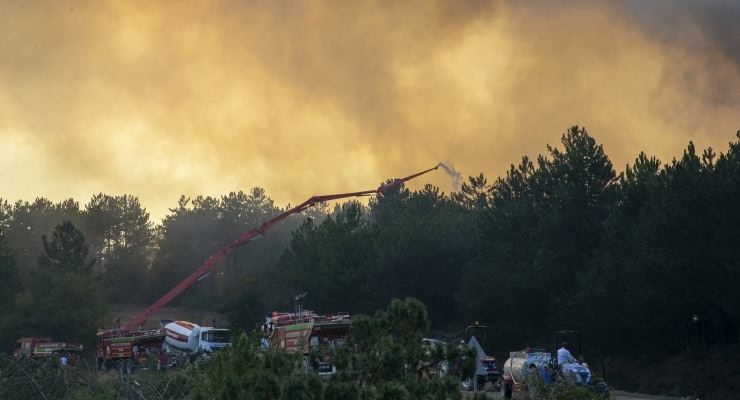 Yangına 10 uçak, dokuz helikopterle havadan, 75 arazöz, 35 itfaiye, 10 dozer, 92 diğer araçlar ve 760 personelle müdahale ediliyor.