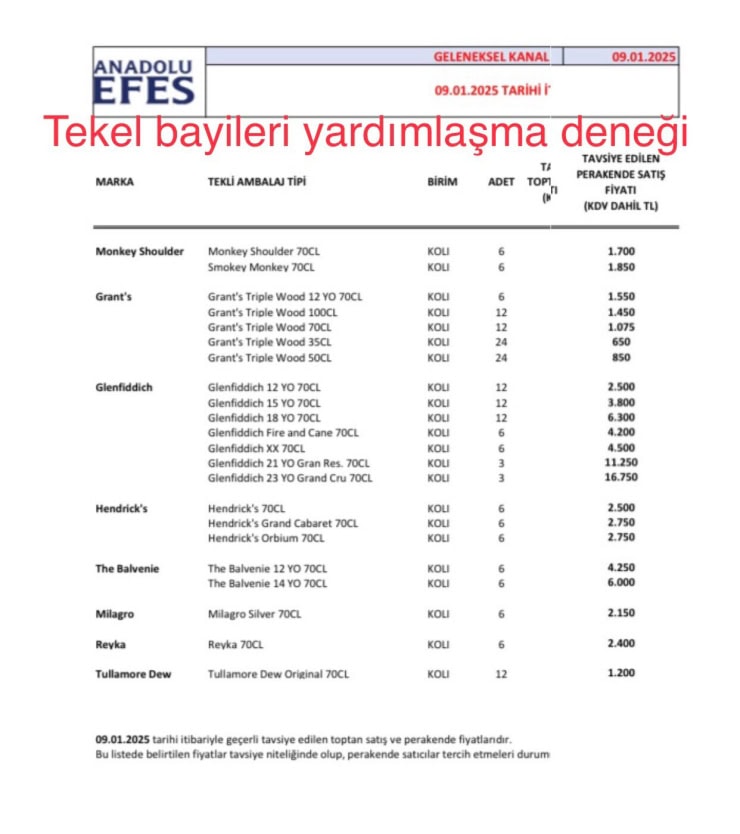 Tekel Bayileri Yardımlaşma Derneği (TBYD) Başkanı Erol Dündar, Anadolu Efes ağır içki grubuna zam geldiğini duyurdu.