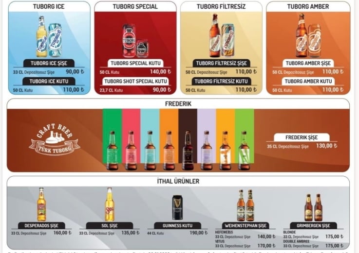 Zamlı listeye göre Tuborg bira grubunda 50 cl depozitolu şişe fiyatı 107 liraya çıktı. Bazı bira fiyatları şöyle…
