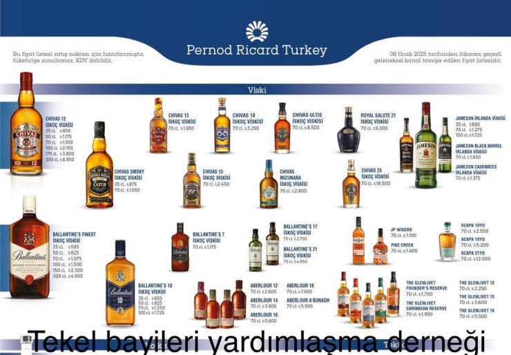 Tekel Bayileri Yardımlaşma Derneği (TBYD) Başkanı Erol Dündar, Pernod Ricard ağır içki grubuna zam geldiğini duyurdu.