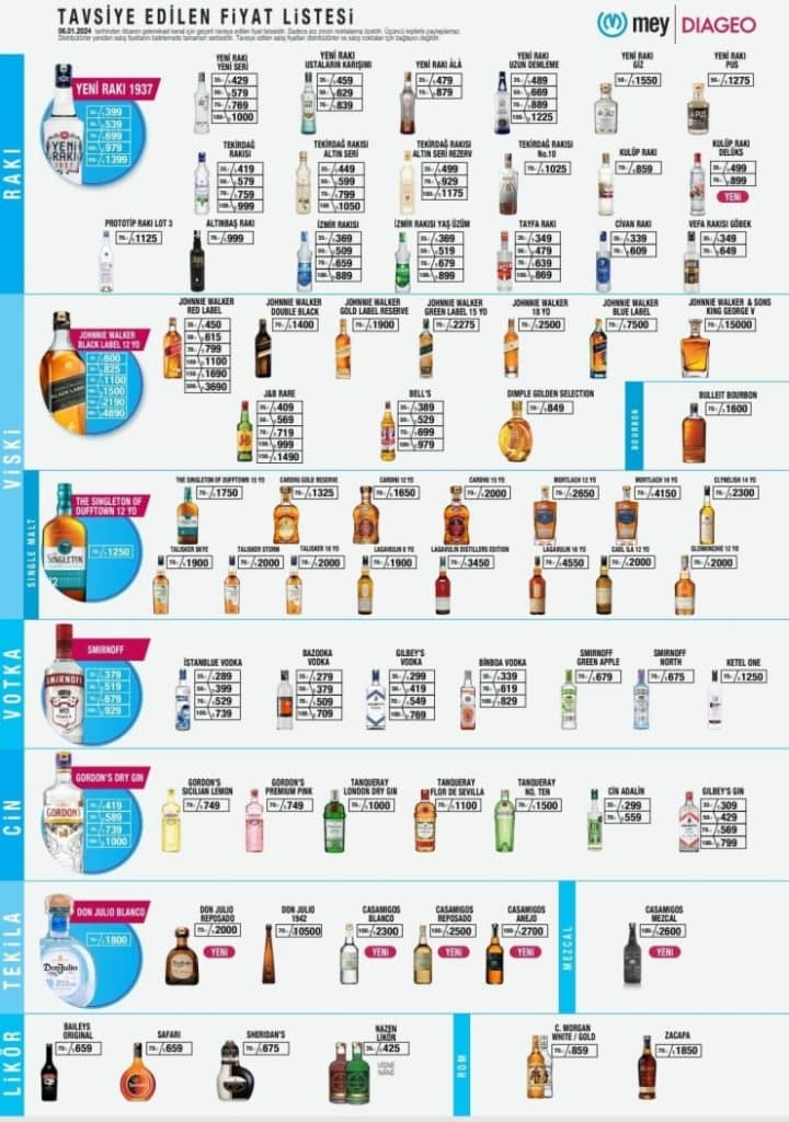 Tekel Bayileri Platformu (TBP) Başkanı Özgür Aybaş, Mey | Diageo’nun sattığı içkilere gelen zamları paylaştı.
