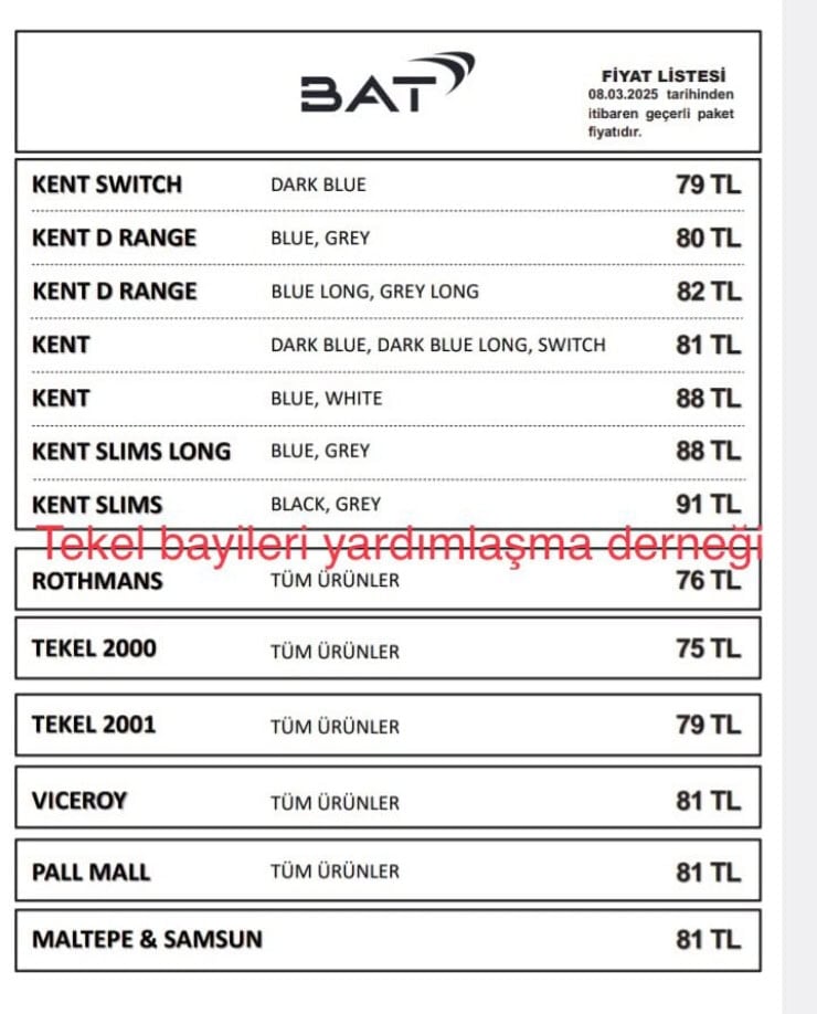 Tekel Bayileri Yardımlaşma Derneği Başkanı Erol Dündar, BAT sigara grubuna zam geldiğini duyurdu.