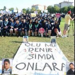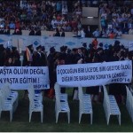 Ayrıca kapalı tribünde de ‘İş cinayeti her yerde; fabrikada, madende, plazada, üniversitede’ yazan dev bir pankart asılıydı.