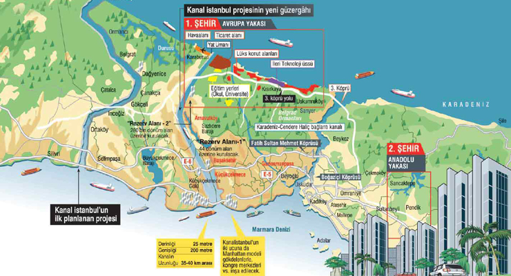 Cumhurbaşkanı Tayyip Erdoğan’ın 2011 seçimleri öncesi ‘çılgın proje’ olarak tanıttığı ve biliminsanlarının Karadeniz ve Marmara’nın ekolojik dengesini yerle bir edeceği gerekçesiyle karşı çıktığı Kanal İstanbul’un ‘gözden geçirilmiş’ son hali ortaya çıktı.