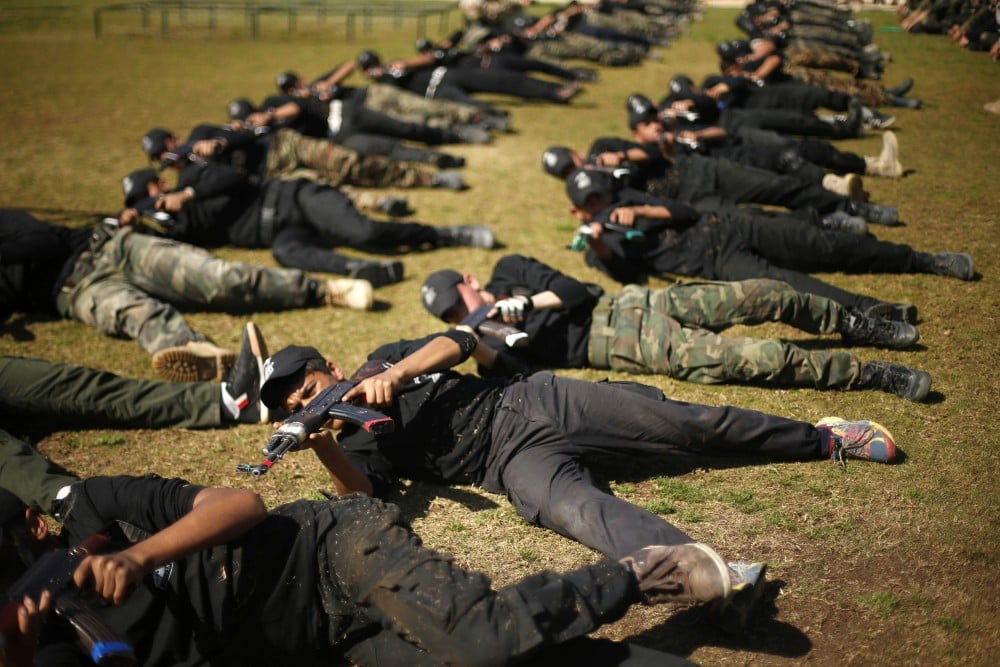 Palestinian youths demonstrate their skills with weapons during a military-style graduation ceremony after being trained at one of the Hamas-run Liberation Camps, in Gaza City January 29, 2015. Hamas’s armed wing organized “Liberation Youths Camps” for young Palestinians aged between 15 and 21 to prepare them to “confront any possible Israeli attack”, Hamas officials said. According to organizers, some 17,000 youths graduated from these camps. REUTERS/Suhaib Salem (GAZA – Tags: MILITARY POLITICS)
