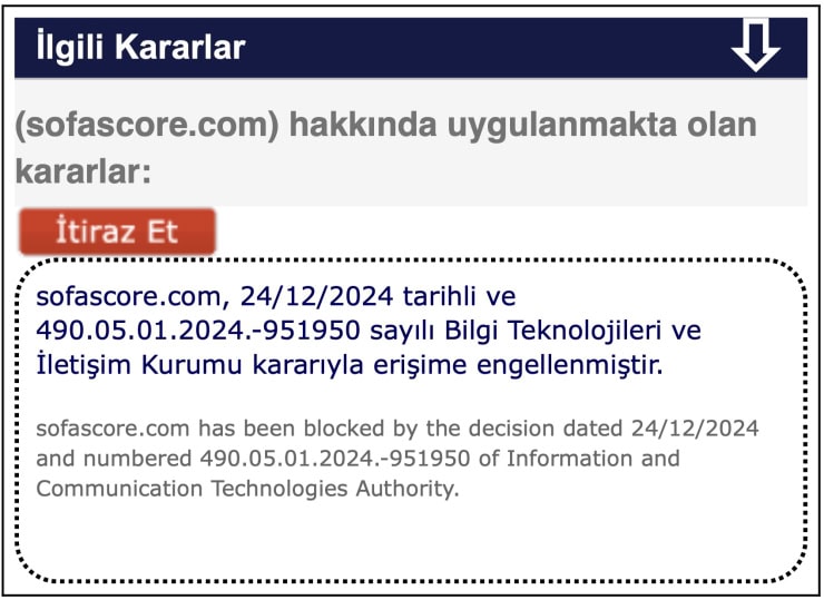 BTK, 20 farklı spor dalına ilişkin analiz, canlı yayın ve istatiğin olduğu Hırvatistan merkezli Sofascore platformuna erişim engeli getirdi.
