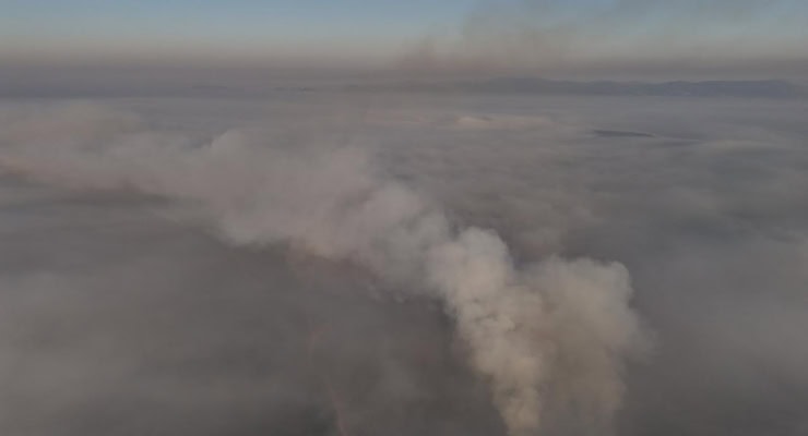 Bursa’da 26 Temmuz’da çıkan iki ilçedeki orman yangını sürüyor. Gökyüzünü duman kapladı.