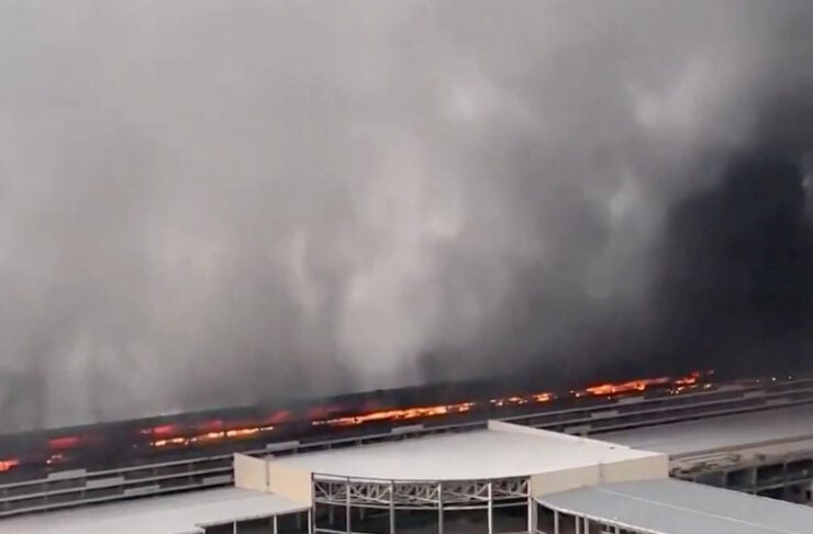 Çinli elektrikli araç üretici BYD’nin fabrikasında test için kullanılan ve hurdaya çıkarılan araçların park edildiği garajda yangın meydana geldi.