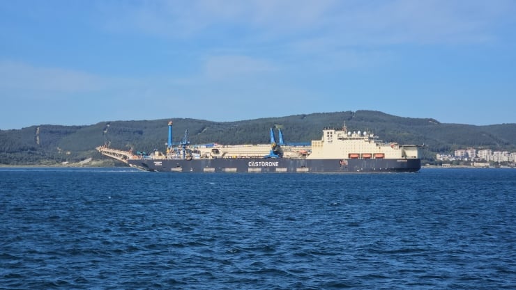 Çanakkale Boğazı derin denizde boru indirme gemisi ‘Castorone’ nedeniyle tek yönlü kapatıldı.
