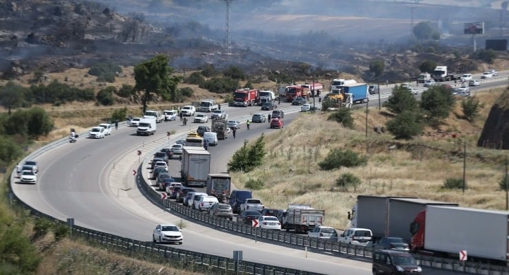 Çanakkale'de yangın: İzmir karayolunda trafik kontrollü