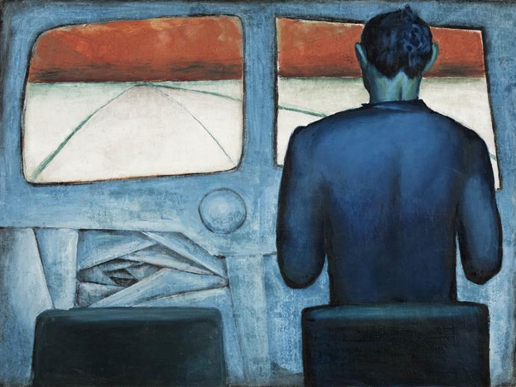 Ateş kızılı bir göğe doğru hiç bitmeyecek hissettiren bir yoldayız. Etraf bomboş, ölü. Neredeyiz? Nereye götürülüyoruz? İkidebir sallanmasak yanıtlayacağız. Ya bu adam, bu kim? Bir camdan dışarıya bakıyoruz, bir kalın mavi enseye, bir cam, bir ense. Biri hiçlik, öteki ölüm… Korkmalı mı?