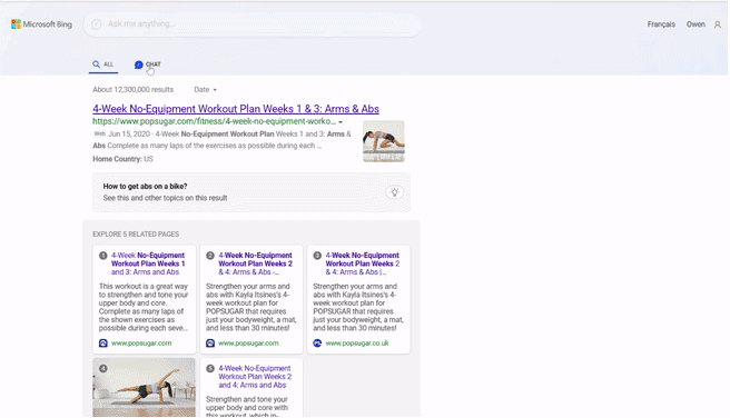 Bununla birlikte, yeni Bing arayüzü, kullanıcıların ileri geri geçmesine izin veren sekmeli bir arayüzle geleneksel arama sonuçlarına erişime izin vermeye devam ediyor.