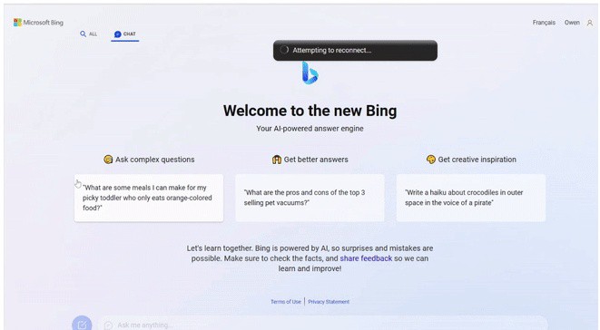 Kısa bir süre bing.com/new URL’sinden yapılan yayın şimdi kullanıcıları yine Bing’in ana sayfasına yönlendiriyor. Öte yandan Bing’de klasik aramalara devam edileceği, ChatGPT’nin bir sekme olarak yer alacağı görülüyor.