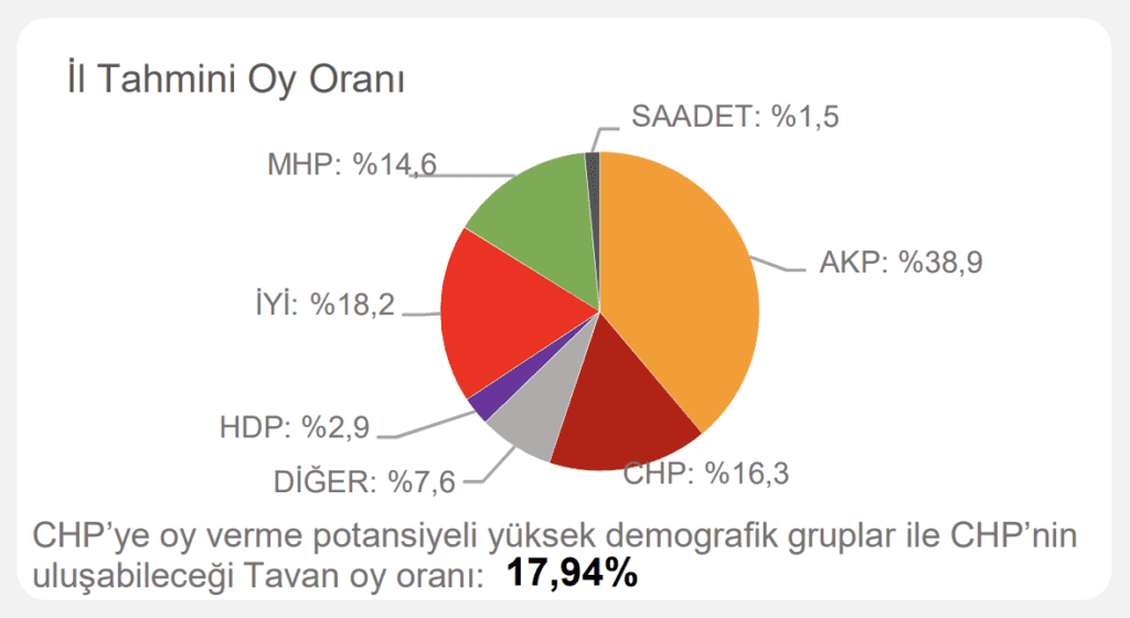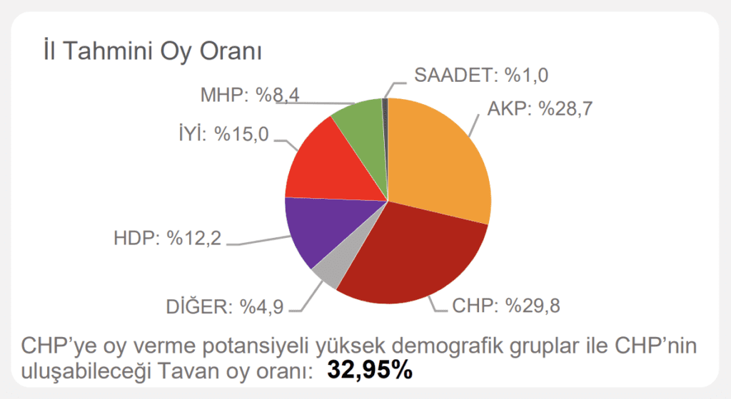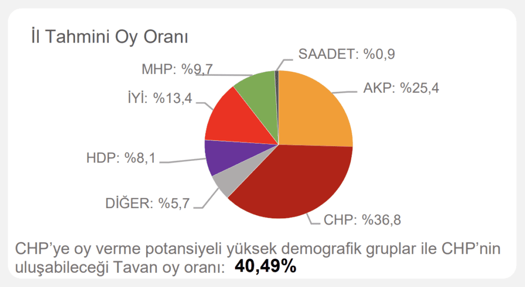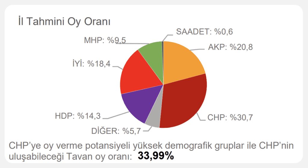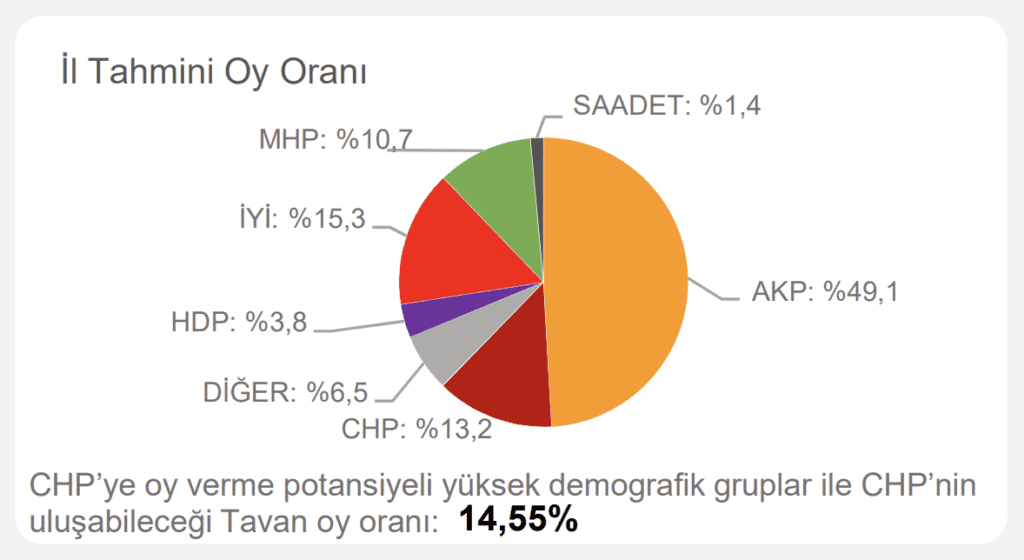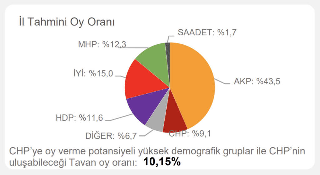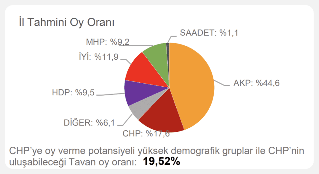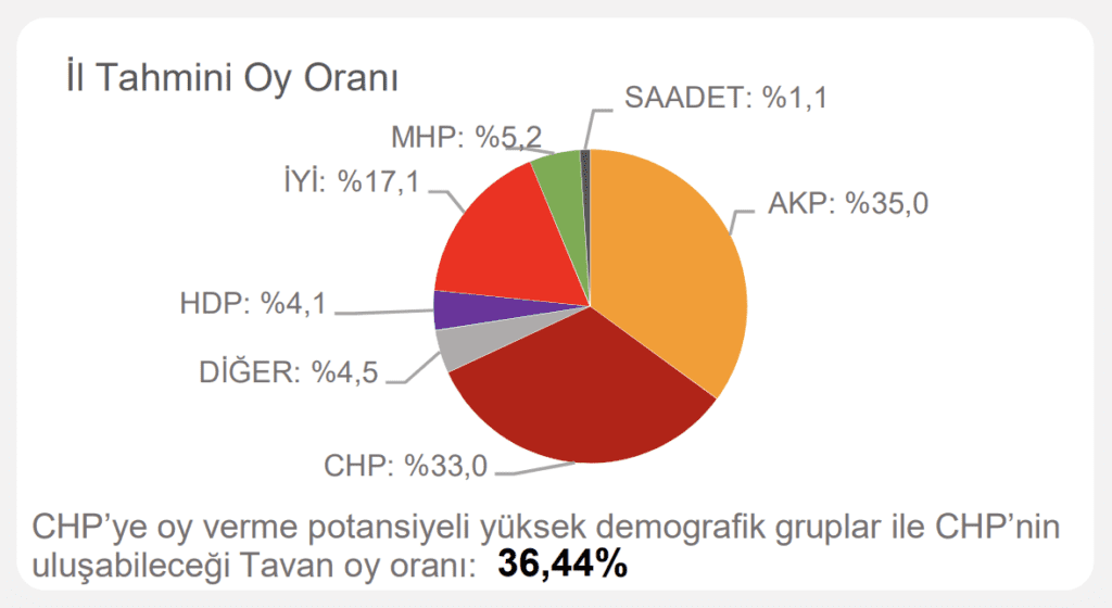Çalışmada ayrıca ‘CHP’ye oy verme potansiyeli yüksek demografik gruplar’ ve ‘CHP’nin ulaşabileceği tavan oy oranı’ notuyla hedef de belirlendi.