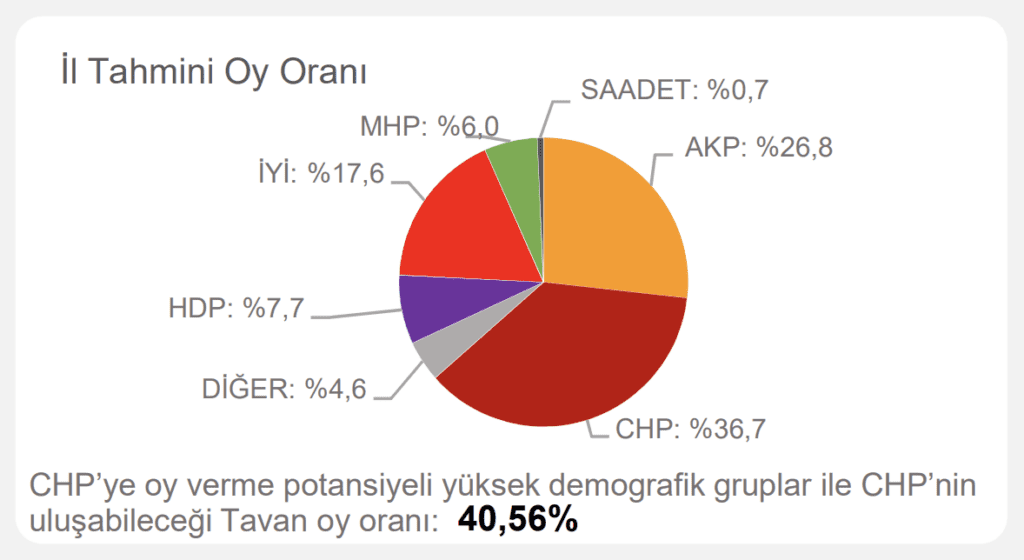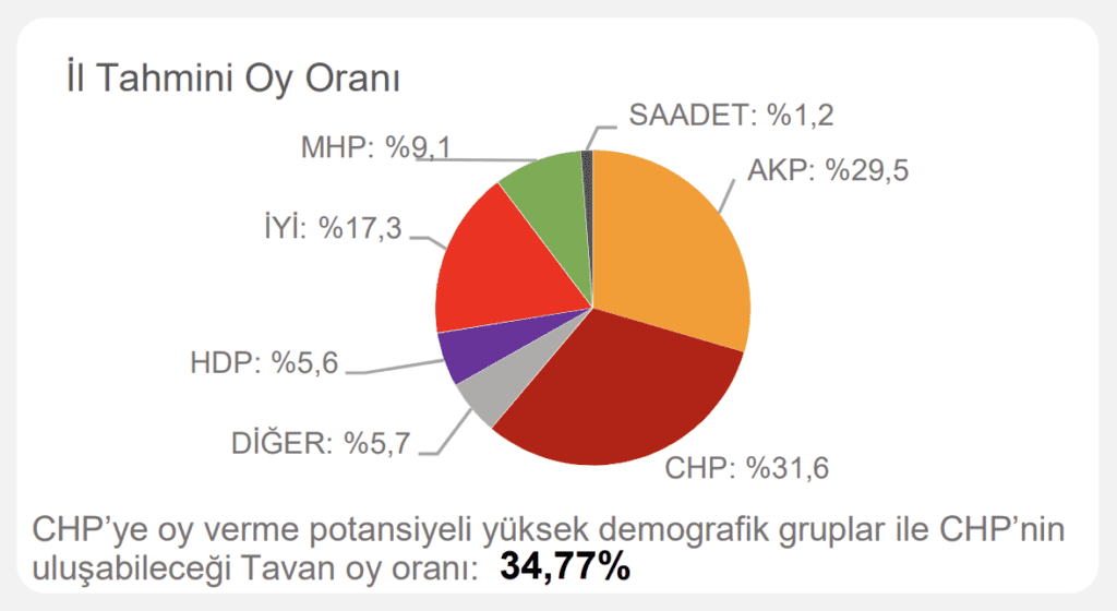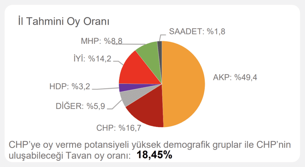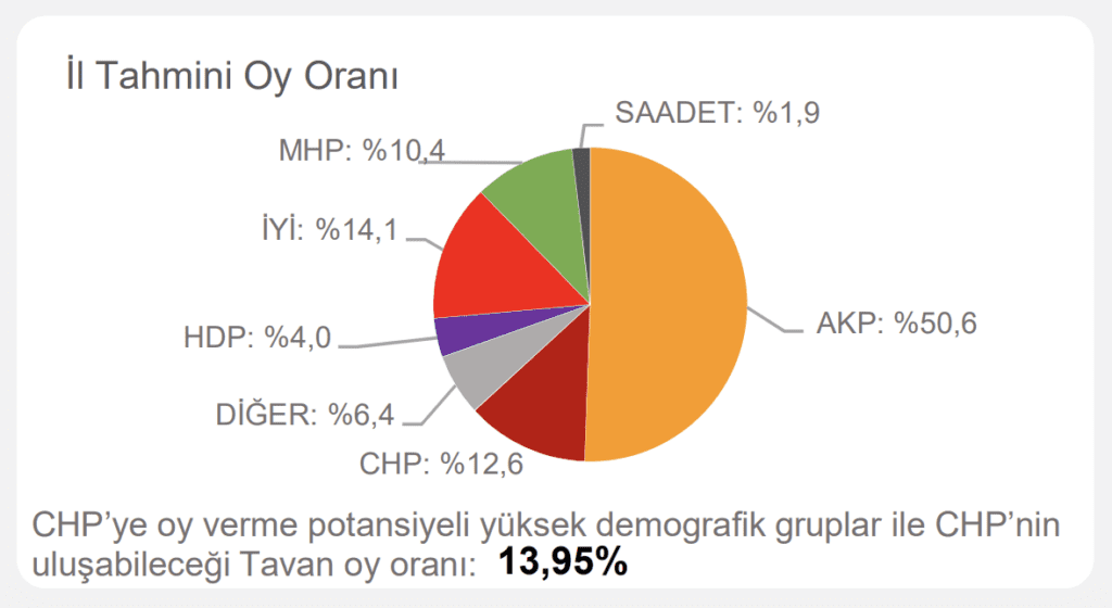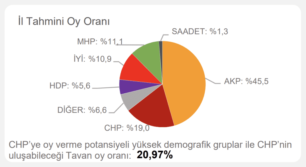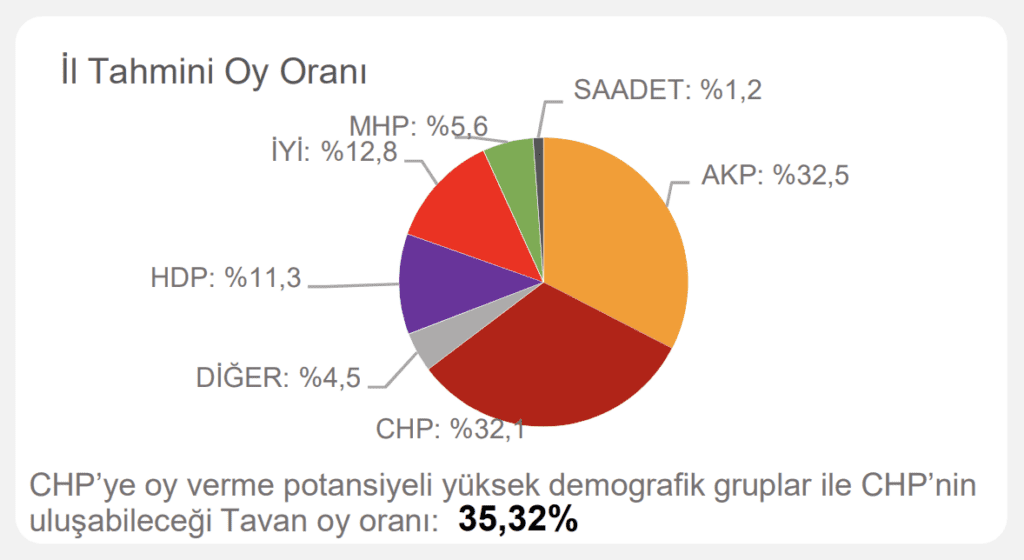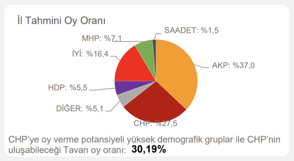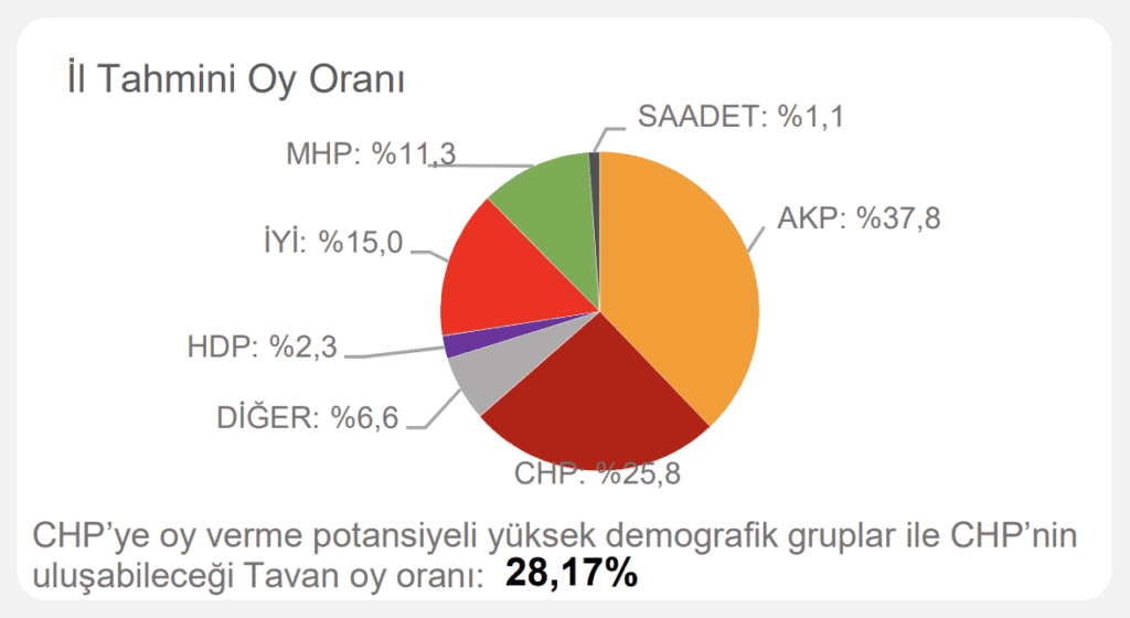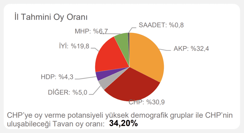 Çalışmada ayrıca ‘CHP’ye oy verme potansiyeli yüksek demografik gruplar’ ve ‘CHP’nin ulaşabileceği tavan oy oranı’ notuyla hedef de belirlendi.