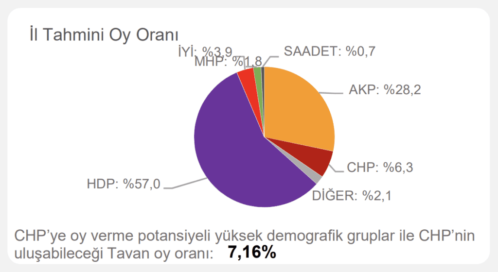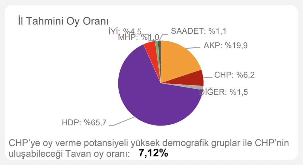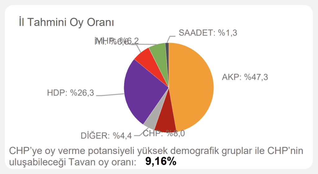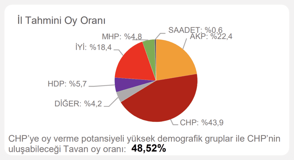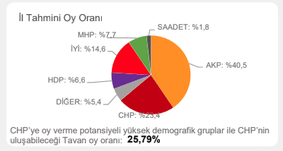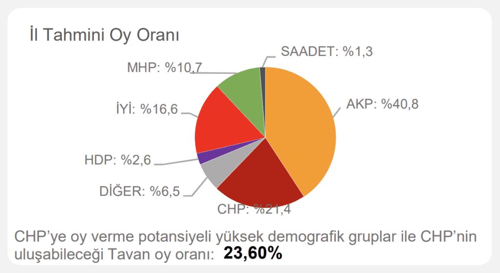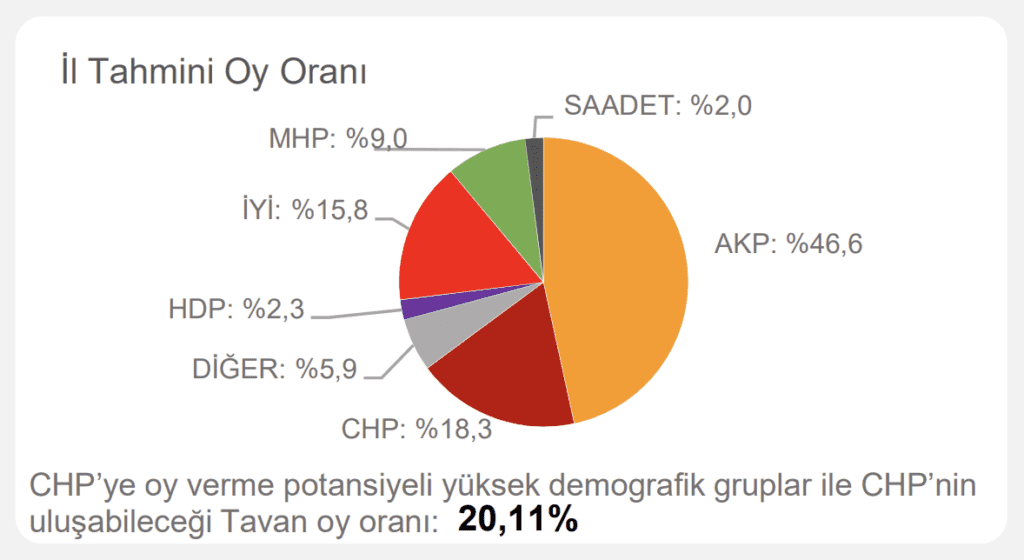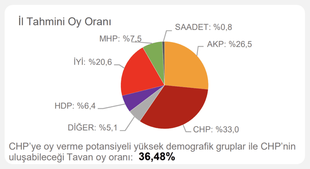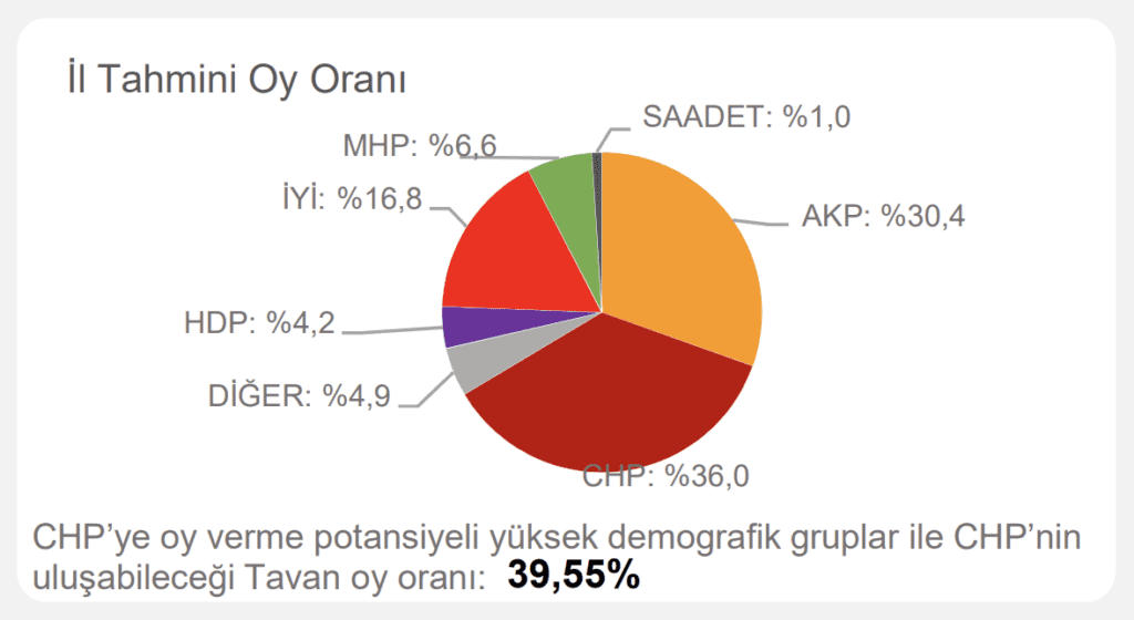 Çalışmada ayrıca ‘CHP’ye oy verme potansiyeli yüksek demografik gruplar’ ve ‘CHP’nin ulaşabileceği tavan oy oranı’ notuyla hedef de belirlendi.