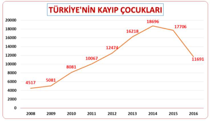 Buna göre bu tarihlerde resmi olarak kayıp müracaatı yapılan ve güvenlik birimleri ya da vatandaşlar tarafından bulunarak güvenlik birimlerine götürülen kayıp çocuk sayısı 104 bin 531 olarak kayda geçti.