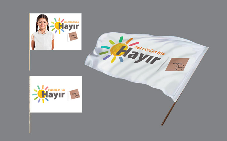 Logoda ‘Hayır’ yazılı ve ‘Tercih’ mührü basılı referandum pusulası da bulunuyor. Ancak afiş, bayrak ve posterlerde parti logosuna yer verilmedi.