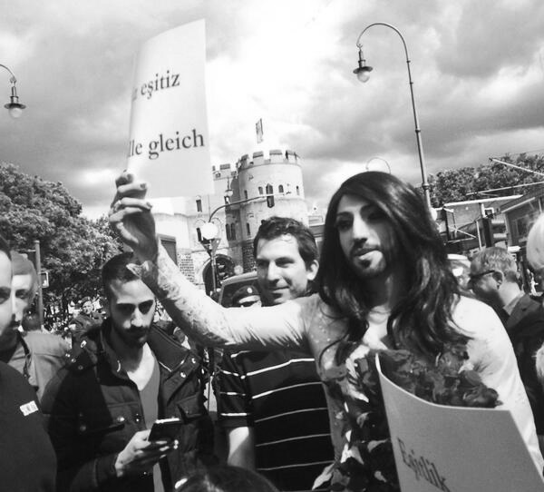 Erdoğan'ı protesto mitinginde Conchita Wurst muamması