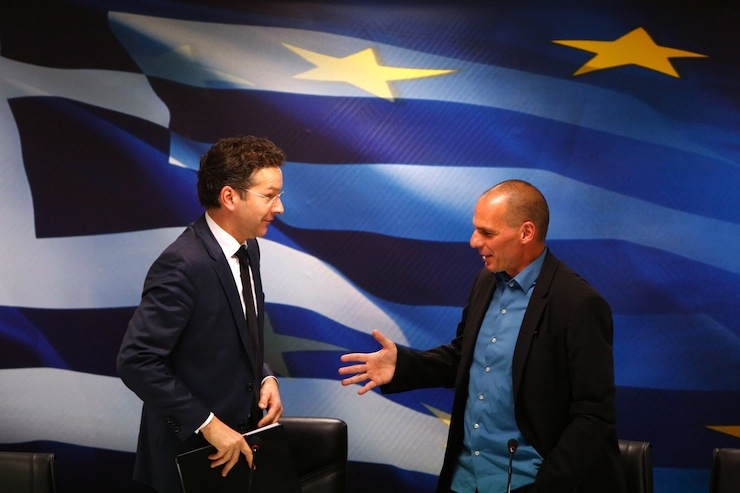 Ana Sayfa Dakika bir gol bir: Yunan bakan 'troyka'ya rest çekti Dijsselbloem, head of the euro zone finance ministers' group, and Greek Finance Minister Yanis Varoufakis shake hands after their common press conference at the ministry in Athens